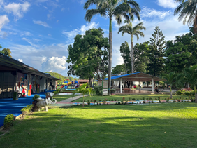 Disponemos de amplias zonas verdes, una granja de contacto, piscina adaptada y espacios recreativos